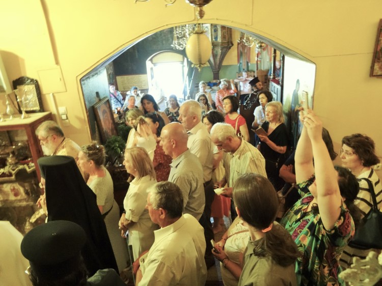 Κατά την Θεία Λειτουργία παρέστη η Καθηγουμένη της Ιεράς Μονής Αγίων Αγγέλων Λέρου μοναχή Παρασκευή και η μοναχή Ευλογία, ο Δήμαρχος Λέρου κ.Μ.Κόλιας, ο Φρούραρχος του νησιού και πλήθος πιστών και πνευματικών της τέκνων, μεταξύ των οποίων ζεύγος που ταξίδεψε οδικώς από την Αγία Πετρούπολη ειδικά για την επέτειο της ανακομιδής, και παρευρέθησαν στην Λέρο με την βοήθεια της Θείας Χάριτος, αφού επιλύθηκαν θαυμαστώς θέματα βίζας στα σύνορα κατόπιν επικλήσεως της Γερόντισσας!