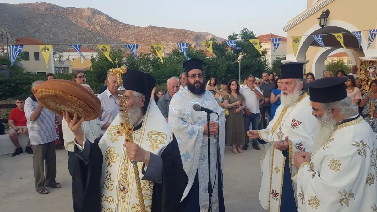 Στις 7 τελέστηκε ο Μέγας Πανηγυρικός Αρχιερατικός Εσπερινός μετ’ αρτοκλασίας, χοροστατούντος του Σεβασμιωτάτου Μητροπολίτου Λέρου κ. Παϊσίου, συμπαρατατουμένου υπό του εφημερίου π. Νικολάου Καζαβούλη και Ιερέων της νήσου.