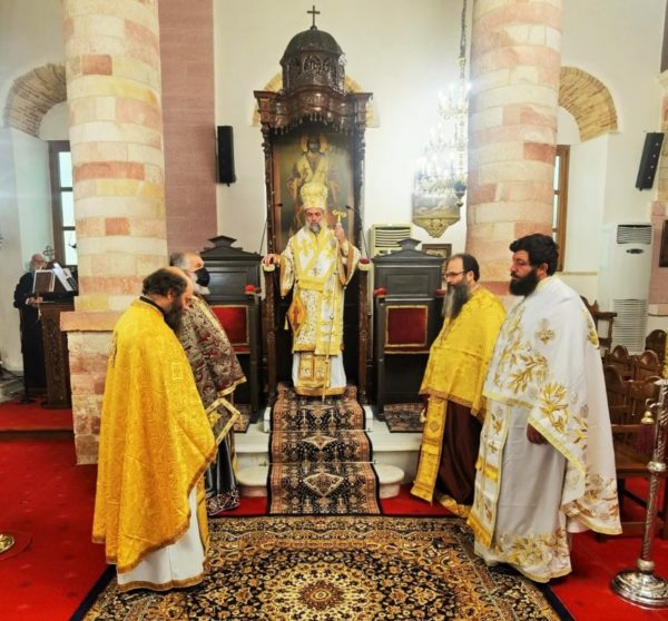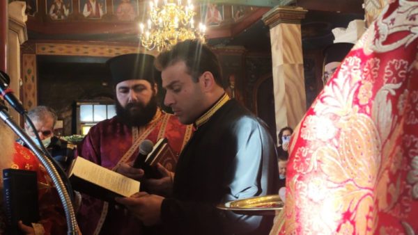 Προ της Θείας Λειτουργίας ο Μητροπολίτης ετέλεσε την χειροθεσία του αριστερού ιεροψάλτου του Ναού, ευλαβεστάτου κ. Αντωνίου Κουτσουράη. Τόσο κατά τον Εσπερινό όσο και κατά την Θεία Λειτουργία έψαλλαν οι καλλίφωνοι ιεροψάλτες, στο δεξιό αναλόγιο οι κ.κ. Νικόλαος Βεζυρόπουλος, Εμμ. Τσεσμελής, Χαράλαμπος Ζαχαρίου και στο αριστερό αναλόγιο οι κ.κ. Μικές Κουλιάς και Αντώνιος Κουτσουράης.
