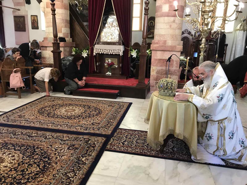 Την πρωΐαν της Κυριακής (4-6-2023), ο Σεβασμιώτατος Μητροπολίτης κ. Παΐσιος, ιερούργησε στον Ιερό Μητροπολιτικό Ναό του Ευαγγελισμού της Θεοτόκου Λέρου και εν συνεχεία προέστη της Ακολουθίας του Εσπερινού αναγιγνώσκοντας κατά την τάξιν τις Ευχές της Γονυκλισίας. Μετά του Μητροπολίτου συλλειτούργησε ο εφημέριος του Ναού π. Νικόλαος Ταχλιαμπούρης, ενώ στο ιερό αναλόγιο έψαλαν ο πρωτοψάλτης Ελευθέριος Χατζηλάρης και οι ιεροψάλται Άγγελος Αγγελίδης και Ιωάννης Γκιουζέππος.