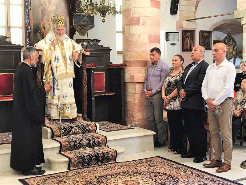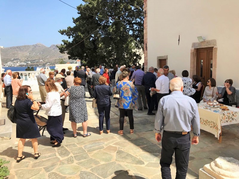 Αμέσως μετά την τέλεση των Ιερών Ακολουθιών ο Εφημέριος του Ναού και το εκκλησιαστικό συμβούλιο, προς τιμήν του Μητροπολίτου και των εκδρομέων της Ρόδου, παρέθεσαν δεξίωση στον αύλειο χώρο του Ναού.