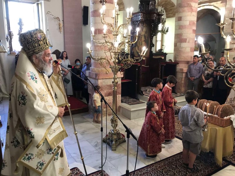 Στην ομιλία του προς τους ευλαβείς χριστιανούς, ο Σεβασμιώτατος αναφέρθηκε στο σωτηριώδες γεγονός της επιφοιτήσεως του Αγίου Πνεύματος, τονίζοντας ότι «τα διάφορα δεινά που περνάει η ανθρωπότητα είναι απόρροια της απομάκρυνσης του ανθρώπου από τον Θεό, ενώ συνέστησε ενότητα, αγάπη, αλήθεια. Η Εκκλησία είναι η μόνη πηγή σωτηρίας πού φωτίζει, αγιάζει, και χειραγωγεί στη σωτηρία τους πιστούς και τους οδηγεί στην ουράνιο Πολιτεία».
