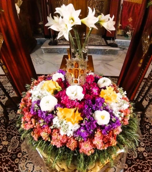 Στην Κάλυμνο σύμφωνα με το έθιμο οι εκκλησίες ετοιμάζουν μικρές φούντες από κρίνα και άλλα ανοιξιάτικα λουλούδια που μοιράζονται στους πιστούς.