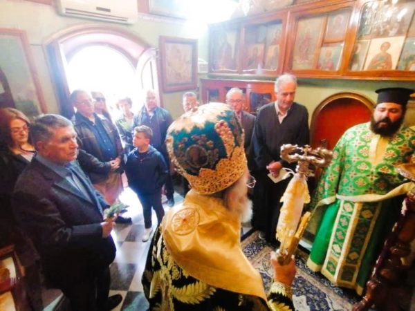 Στον Ιερό Ναό της Υψώσεως του Τιμίου Σταυρού Πλατάνου Λέρου, την Κυριακή της Σταυροπροσκυνήσεως, 7 Απριλίου 2024, ο Θεοφιλέστατος Επίσκοπος Στρατονικείας κ. Στέφανος προεξήρχε της Αρχιερατικής Θείας Λειτουργίας, συμπαραστατούμενος υπό του εφημερίου π. Νικολάου Ταχλιαμπούρη. Τον θείο λόγο κήρυξε ο Θεοφιλέστατος αναφερθείς στη μεγάλη αρετή της μετανοίας και της ταπείνωσης. Εν συνεχεία ακολούθησε η έξοδος του Τιμίου Σταυρού, ο οποίος Τίμιος Σταυρός ήταν ευπρεπισμένος με άνθη εντός δίσκου, κατά την τάξιν του τυπικού της Μεγάλης του Χριστού Εκκλησίας. Στο ιερό αναλόγιο έψαλλαν κατανυκτικά ο Άγγελος Αγγελίδης και ο Ιωάννης Γκιουζέππος. Μετά το πέρας της Θείας Λειτουργίας ο Θεοφιλέστατος μοίρασε αντίδωρο και τα «ματσάκια», κατά το έθος.