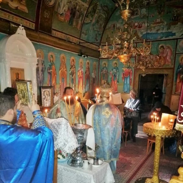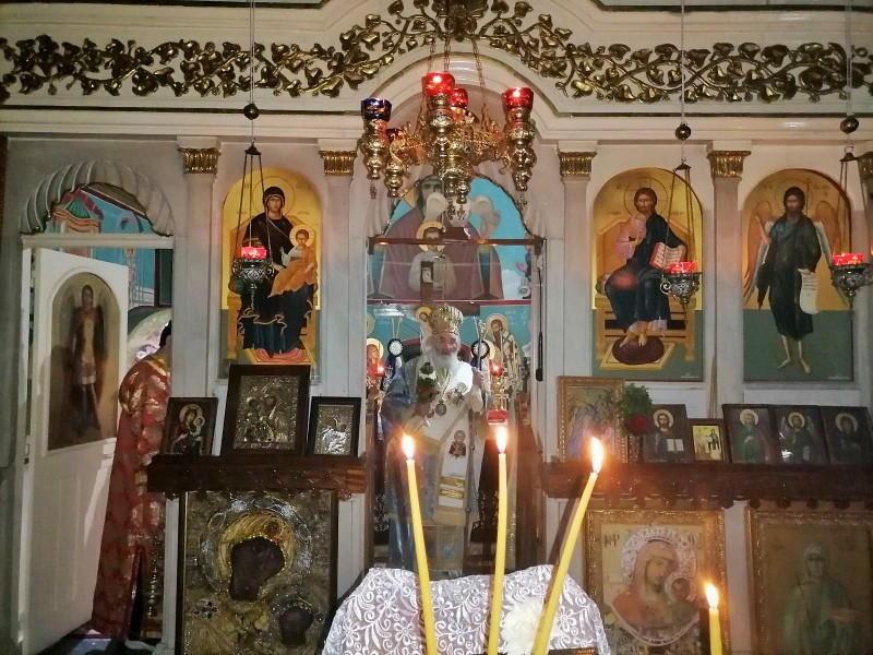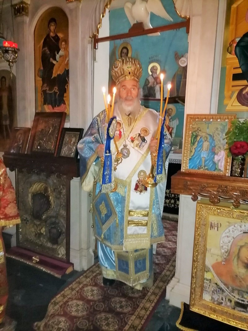 Ο Μητροπολίτης Λέρου Καλύμνου και Αστυπάλαιας τέλεσε την Θεία Λειτουργία και τον Μέγα Αγιασμό, κατά την Τάξιν της Μεγάλης του Χριστού Εκκλησίας, τουτέστιν μετά την Μεγάλη Δοξολογία τέλεσε τον Αγιασμό. Έρανε τις Μοναχές και τους πιστούς, και τέλεσε την Θεία Λειτουργία, στην οποία έψαλλαν οι Μοναχές.
