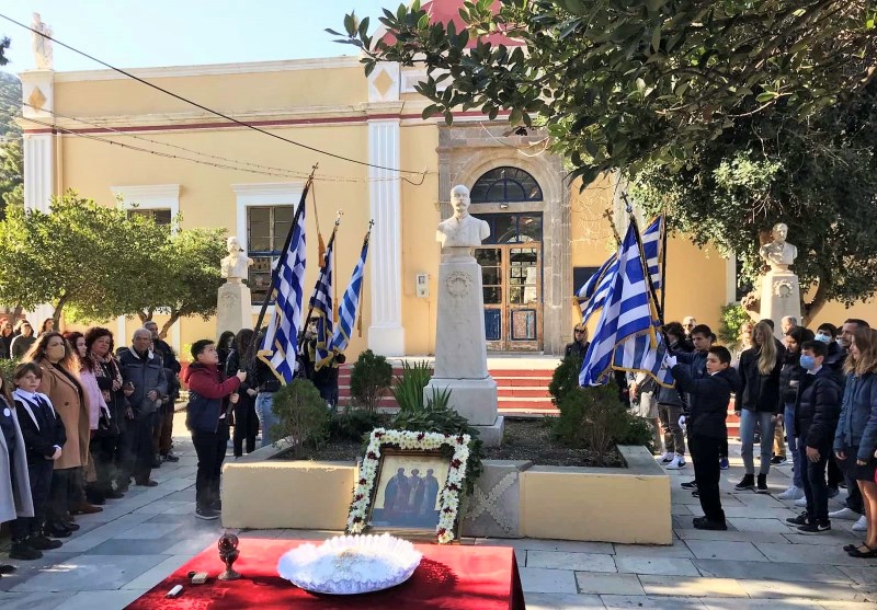 Μετά την Θεία Λειτουργία, στον αύλειο χώρο του «Νικολαϊδείου» Δημοτικού Σχολείου Αγίας Μαρίνης, ενώπιον των προτομών των μεγάλων ευεργετών και δωρητών, τελέσθηκε τρισάγιο, κατατέθηκαν στεφάνια στις προτομές τους και εψάλη ο Εθνικός Ύμνος.