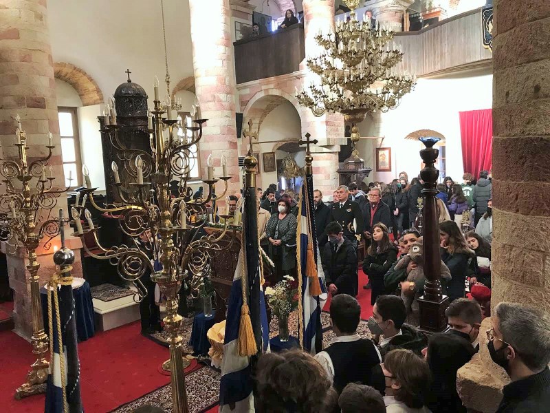 Το παρόν έδωσαν ο αντιδήμαρχος Νεκτάριος Μπίλλης, η πρόεδρος του Δημοτικού Συμβουλίου Μαρία Παπαφώτη-Βασιλάκου (η οποία είναι και Γυμνασιάρχης του «Μπελλενείου» Γυμνασίου), η Διευθύντρια του Δημ. Σχολείου Αγίας Μαρίνας Σιμέλα Κινεβεζίδου, Διευθυντές άλλων εκπαιδευτηρίων, καθηγητές, δάσκαλοι, αντιπροσωπείες μαθητών με τις σημαίες των σχολείων τους,  και αρκετοί πιστοί. Το Μήνυμα του Μητροπολίτου μας για την ημέρα των Τριών Ιεραρχών ανέγνωσε ο  Γραμματέας της Ιεράς Μητροπόλεως Γεώργιος Χρυσούλης.