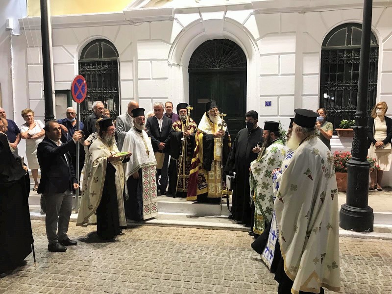 Έμπροσθεν του Δημαρχιακού Μεγάρου έλαβε χώρα η καθιερωμένη δέησις, υπέρ των αποδήμων αδελφών μας και με ευλάβεια κλήρος, τοπικές αρχές και ευσεβής λαός έκλειναν γόνυ προς της θαυματουργού εικόνας του Τιμίου Σταυρού.