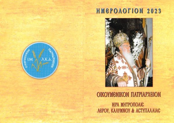Το ημερολόγιο για το έτος 2023 είναι αφιερωμένο στην Αυτού Θειοτάτη Παναγιότητα τον Οικουμενικό Πατριάρχη κ.κ.Βαρθολομαίο, επί τη συμπληρώσει 31 ετών Πατριαρχείας. Το ημερολόγιο κοσμούν 21 φωτογραφίες από την ευλογητή επίσκεψη του Οικουμενικού Πατριάρχου στην Μητρόπολη Λέρου Καλύμνου και Αστυπάλαιας κατά τα έτη 1994 και 1999.