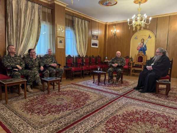 Εθιμοτυπική επίσκεψη στην Ιερά Μητρόπολη Λαρίσης και Τυρνάβου πραγματοποίησε σήμερα, Τετάρτη 18 Ιουνίου 2025, ο Στρατηγός κ. Γεώργιος Κωστίδης, Αρχηγός ΓΕΣ, συνοδευόμενος από τους Αντιστράτηγους κ.κ. Σταύρο Παπασταθόπουλο, Διοικητή 1ης Στρατιάς, Αθανάσιο Γαρίνη, Διοικητή Γ´ Σώματος Στρατού και Παναγιώτη Καβιδόπουλο, Διοικητή Δ´ Σώματος Στρατού.