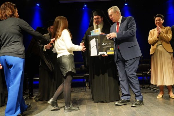 Στη συνέχεια βραβεύτηκαν οι μαθητές των σχολείων της Διεύθυνσης Πρωτοβάθμιας και Δευτεροβάθμιας Εκπαίδευσης του Νομού που πρώτευσαν στον περυσινό μαθητικό διαγωνισμό ποίησης, ζωγραφικής, έκθεσης και ψηφιακής δημιουργίας που συνδιοργάνωσαν η Ιερά Μητρόπολη και η Περιφερειακή Διεύθυνση Εκπαίδευση Θεσσαλίας, με θέματα: «Ένα λουλούδι ανθίζει» και «Η θέση της Γυναίκας μέσα από τα θρησκευτικά κείμενα», ενώ την εκδήλωση πλαισίωσαν με ύμνους και τραγούδια οι μαθήτριες και οι μαθητές του Τμήματος Α3 Λυκείου του Μουσικού Σχολείου Λάρισας, με υπεύθυνους χορωδούς την κ. Βασιλική Κοσμάνου, την κ. Δήμητρα Βρούζου και τον κ. Ιωάννη Βρούζο.
