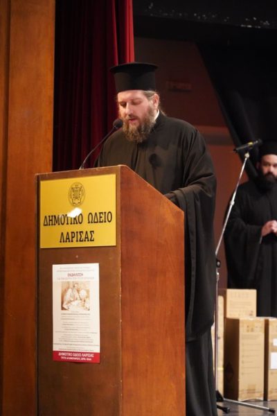 Ο Σεβασμιώτατος Μητροπολίτης Λαρίσης και Τυρνάβου κ. Ιερώνυμος, στη σύντομη προσλαλιά του, αφού ευχαρίστησε τον ομιλητή για την εμπνευσμένη και γεμάτη νοήματα ομιλία του, αλλά και για τον κόπο του να διευθύνει την έκδοση του Περιοδικού μας, και αφού συνεχάρη την εκπαιδευτική κοινότητα και όλους τους μαθητές που συμμετείχαν στον διαγωνισμό που διοργάνωσε η Μητρόπολη, τόνισε πώς όσες φορές αισθανόμαστε πώς κινδυνεύουμε από την πρόοδο της τεχνολογίας είναι σαν να δείχνουμε απιστία προς την παντοδυναμία και την πρόνοια του Θεού «μείζων ἐστὶν ὁ ἐν ὑμῖν».