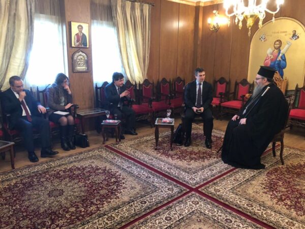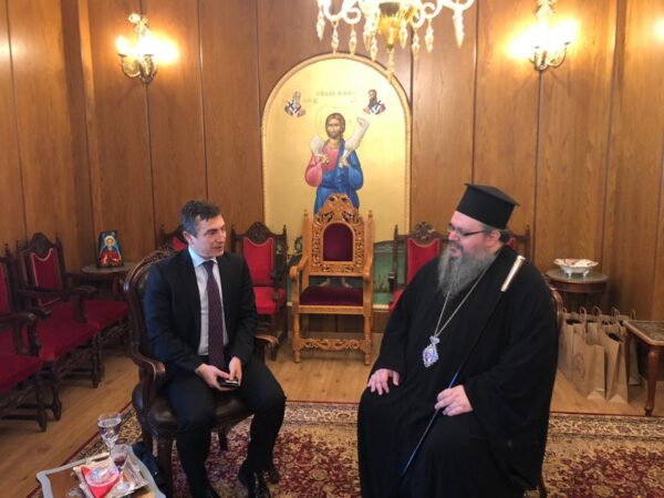 Ο Σεβασμιώτατος, καλωσόρισε τον κ. Πρόξενο και τα μέλη της συνοδείας του και συζήτησαν θέματα κοινού ενδιαφέροντος. Ειδικά αναφέρθηκαν στην επίδραση των θρησκειών ως παραγόντων ειρήνης και συμφώνησαν ότι η θρησκεία δεν μπορεί να είναι όπλο πολιτικής, βίας και τρομοκρατίας.