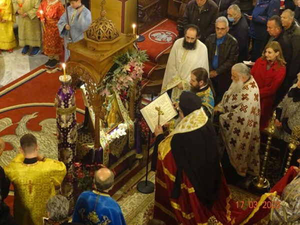 Στον Ιερό Ναό του Αγίου Γεωργίου Μεγαλομάρτυρος Λαρίσης τέλεσε την Γ’ Στάση των Χαιρετισμών προς την Υπεραγία Θεοτόκο ο Σεβασμιώτατος Μητροπολίτης Λαρίσης και Τυρνάβου κ. Ιερώνυμος.
