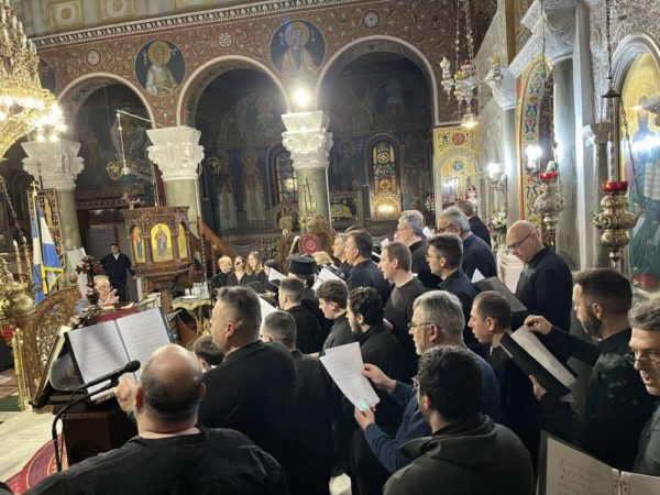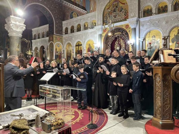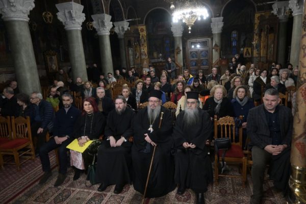 Η εκδήλωση ξεκίνησε με επίκαιρους ύμνους της περιόδου που απέδωσε θαυμάσια η Σχολή Βυζαντινής Μουσικής της Μητροπόλεως μας, με χοράρχη τον Διευθυντή αυτής κ. Ιωάννη Μαυρομάτη, ενώ κεντρική ομιλήτρια ήταν η κ. Φανή Καλοκαιρινού, επιστημονική συνεργάτιδα του Λαογραφικού Μουσείου Λάρισας.