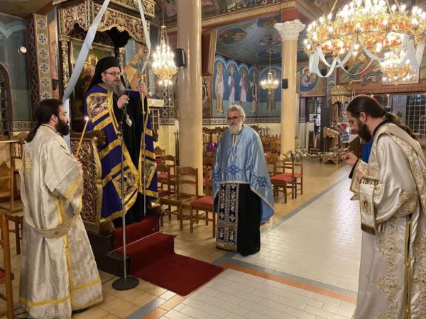 Στον Ιερό Ναό Παμμεγίστων Ταξιαρχών Λαρίσης μετέβη ο Σεβασμιώτατος Μητροπολίτης Λαρίσης και Τυρνάβου κ. Ιερώνυμος και χοροστάτησε στον πανηγυρικό εσπερινό για την εορτή των Αγίων Αρχαγγέλων το Σάββατο 7 Νοεμβρίου 2020 τηρώντας όλα τα προβλεπόμενα μέτρα της νέας ΚΥΑ.