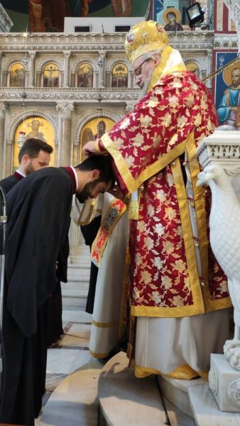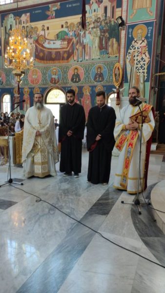 Ο Σεβασμιώτατος στο κήρυγμά του αναφέρθηκε στην χαρά της Εκκλησίας για τη γενέθλια ημέρα Της και πόσο σημαντική είναι η Επιφοίτηση του Αγίου Πνεύματος. Στη διάρκεια του Εσπερινού ο Σεβασμιώτατος χειροθέτησε Αναγνώστες τον κ. Αθανάσιο Οικονόμου και τον κ. Κωνσταντίνο Κουμπατή, οι οποίοι διακονούν το αναλόγιο του Ιερού Ναού.