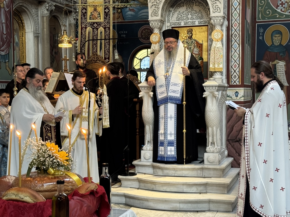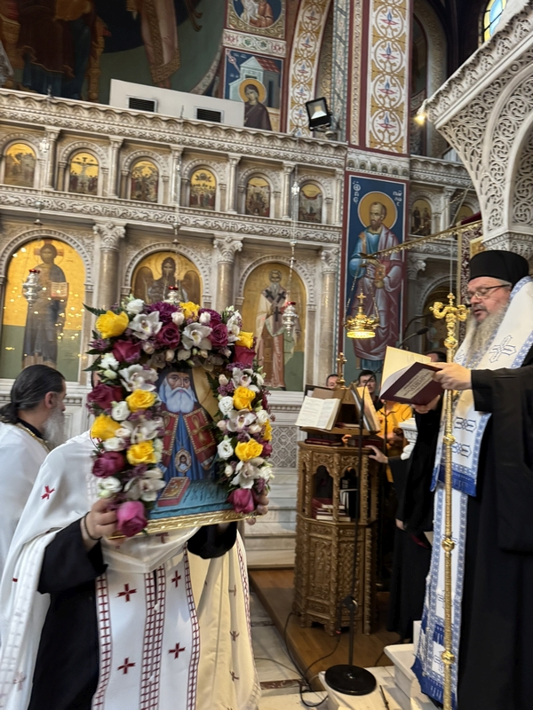Στον κατάμεστο Ναό, όπου πλήθος κόσμου συνέρευσε για να προσκυνήσει ιερό απότμημα του Λειψάνου του Αγίου, καθώς και την χαριτόβρυτη Εικόνα του, ο Σεβασμιώτατος βρήκε την ευκαιρία να αναφερθεί στο βίο του Αγίου και τα μηνύματα που έχει να μας προσφέρει.
