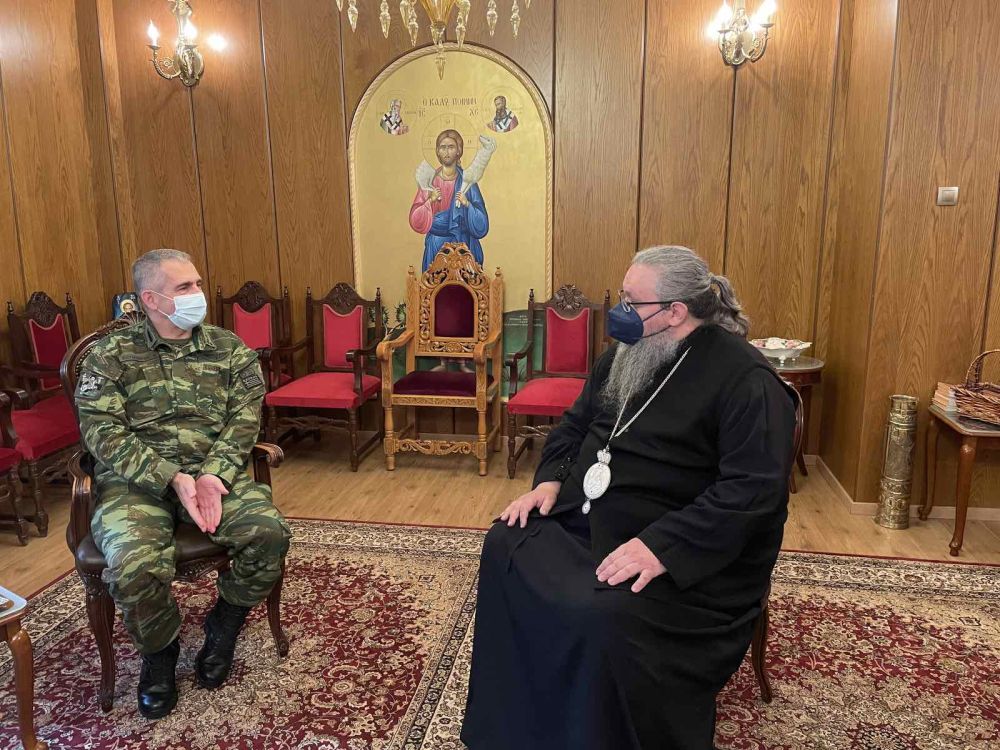 Την καθιερωμένη εθιμοτυπική επίσκεψη στην αίθουσα θρόνου του Επισκοπείου από τον νέο Διοικητή της 1ης Στρατιάς, Αντιστράτηγο κ. Άγγελο Χουδελούδη δέχθηκε σήμερα, Πέμπτη 31 Μαρτίου 2022, το πρωί, ο Σεβασμιώτατος Μητροπολίτης Λαρίσης και Τυρνάβου κ. Ιερώνυμος.