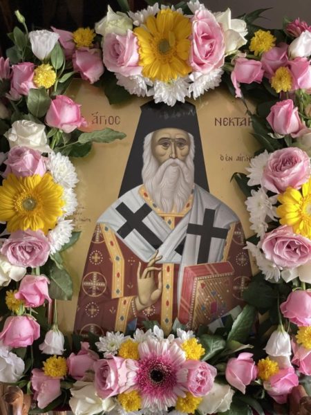 Ο Σεβασμιώτατος στο κήρυγμά του αναφέρθηκε στον οσιακό βίο του Αγίου Νεκταρίου, ο οποίος συκοφαντήθηκε από τους ανθρώπους αλλά είχε παρρησία στον θρόνο του Αγίου Θεού.