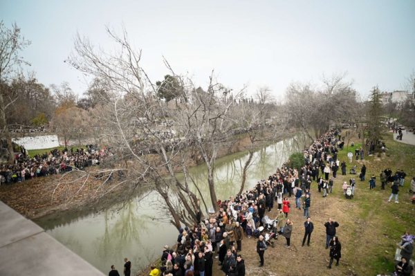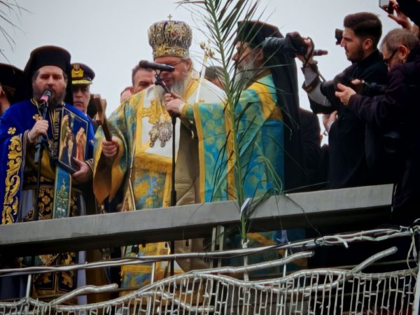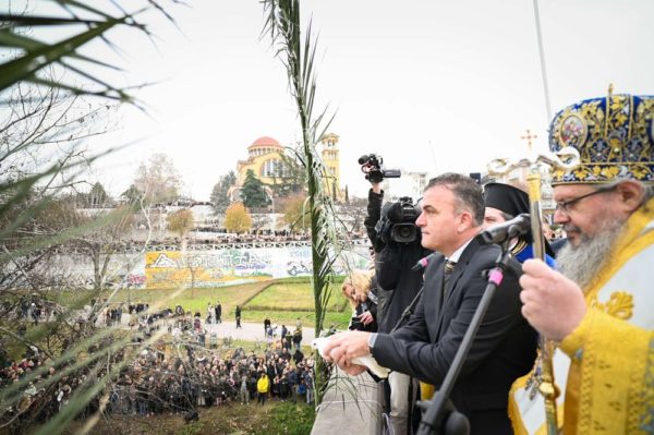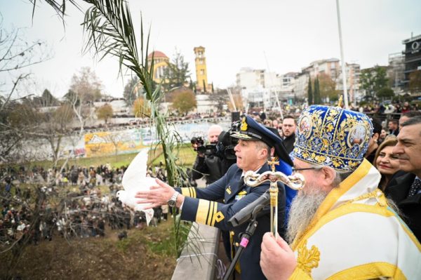 Πλήθος πιστών συμμετείχε από τη γέφυρα του Πηνειού την κατάδυση του Τιμίου Σταυρού και τον καθαγιασμό των υδάτων.