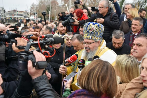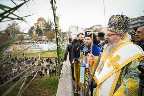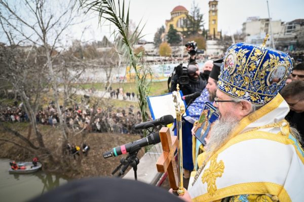 Ο Σεβασμιώτατος, ευθύς αμέσως μετά την ρίψη του Σταυρού, ευχήθηκε σε όλους τους Λαρισαίους να έχουν την ευλογία του Επιφανέντος Κυρίου, ενώ έκανε ιδιαίτερη μνεία στο γεγονός της εξαφάνισης του δικού μας Βασίλη που σκιάζει αυτές τις μέρες την πόλη μας, ενός παιδιού που όλοι τον ξέραμε και οι περισσότεροι τον χαιρόμασταν, τονίζοντας πως λέγονται πολλά που δεν απηχούν την αλήθεια και δημιουργούν λάθος εντυπώσεις και ένταση. Όπως είχε πει στα Τέμπη και είχε παρεξηγηθεί δεν χρειάζεται θόρυβος, γιατί όταν γίνεται θόρυβος δεν μπορεί να ακουστει η φωνή της αλήθειας. Συνέχισε δε λέγοντας, πώς από όλες τις δηλώσεις που έγιναν δύο ήταν οι καίριες. Αυτή της Ένωσης των Ελλήνων Δικαστών και Εισαγγελέων που συνέστησαν σύνεση και η άλλη της κ. Μαρίας Καρυστιανού που δήλωσε σεβασμό προς τη μητέρα. Ευχήθηκε δε αυτά τα δύο, η σύνεση κι σεβασμός, να πρυτανεύουν στον τρόπο που σκεφτόμαστε και ενεργούμε, όχι μόνο σε σχέση με το συγκεκριμένο περιστατικό, αλλά στην καθημερινότητα μας. Τέλος, αναφέρθηκε στον Αρχιεπίσκοπο Τιράνων και πάσης Αλβανίας κ. Αναστάσιο και την περιπέτεια υγείας που αντιμετωπίζει. Σημείωσε πώς είμαστε στην ξύλινη πεζογέφυρα που φέρει το όνομα του Αρχιεπισκόπου Τιράνων και πάσης Αλβανίας κ. Αναστασίου και ευχήθηκε ο Άγιος Τριαδικός Θεός να μας τον χαρίσει υγιή και πάλι, διότι τον έχει ανάγκη σύμπασα η Ορθοδοξία.
