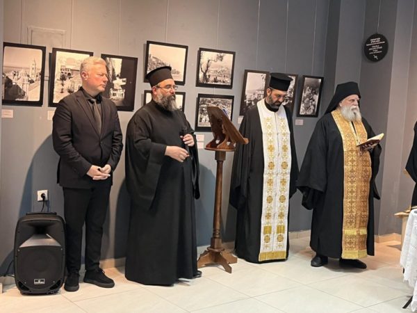 Ο Σεβασμιώτατος, μετά την ακολουθία του Αγιασμού, απηύθυνε πατρική προσλαλιά, επισημαίνοντας μεταξύ άλλων ότι «πέρα από την αισθητική και ιστορική αξία της συλλογής, αξίζει να τονισθεί η παιδαγωγική σημασία που έχει για μικρούς και μεγάλους» και εξηγώντας: «Μέσα από αυτές τις υποβλητικές, μαυρόασπρες ή επιχρωματισμένες, φωτογραφίες ζωντανεύει ένας άλλος κόσμος, όπου η απλότητα βασιλεύει. Είναι ένας κόσμος άθικτος από την τεχνολογική εξέλιξη, σε αρμονία με το περιβάλλον· ένας κόσμος που λατρεύει τον Κύριό του και αγαπά τον πλησίον, τον άλλον άνθρωπο, ως εικόνα Εκείνου· ένας κόσμος που δεν τοποθετεί το χρήμα και την ύλη στην πρώτη θέση της κλίμακας των αξιών, αλλά αγωνίζεται να βρίσκεται σε σχέση κοινωνίας με τον αδελφό και, μέσω αυτού, με τον Θεό. Αυτός ο κόσμος στηρίζεται στο φρόνημα των παλαιών ασκητών της ερήμου: «Είδες τον αδελφόν σου; Είδες Κύριον τον Θεόν σου!» Αν όλοι διαθέταμε τέτοιο φρόνημα σήμερα, πολλά θα ήταν στην κοινωνία μας διαφορετικά…»