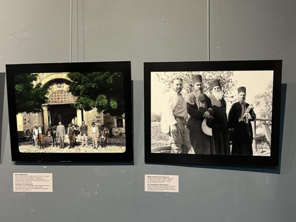 Ο παριστάμενος Διευθυντής της «Αγιορειτικής Εστίας» και επιμελητής της Έκθεσης κ. Αναστάσιος Ντούρος μετέφερε τον χαιρετισμό του Δημάρχου Θεσσαλονίκης και Προέδρου της Εστίας κ. Στυλ. Αγγελούδη και ευχαρίστησε την τοπική Εκκλησία και τον Δήμο για την ωραία συνεργασία, εκφράζοντας την ελπίδα ότι θα αποδώσει στο μέλλον και άλλους καρπούς. Στη συνέχεια, ξενάγησε όλους τους συμμετέχοντες στο φωτογραφικό και το κινηματογραφικό υλικό της Έκθεσης και εξηγώντας πώς βρέθηκε στα τέλη του 2017 στο Τμήμα Τέχνης και Αρχαιολογίας του Πανεπιστημίου Princeton, κατά τη διάρκεια μιας μετακόμισης· πώς πραγματοποιήθηκε το ταξίδι των τριών περιηγητών στο Άγιον Όρος και τα Μετέωρα το φθινόπωρο του 1929 μαζί με τον Έλληνα διερμηνέα τους· πώς εμπλουτίζουν το διαθέσιμο ιστορικό, κοινωνικό, λαογραφικό, αρχιτεκτονικό υλικό με μια νέα, πολύτιμη πηγή και πολύτιμα στοιχεία.