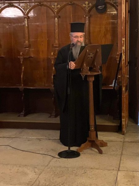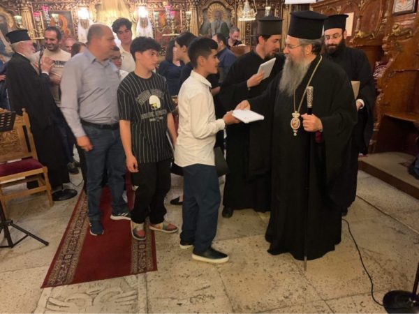 Μετά το πέρας της εκδήλωσης, ο Σεβασμιώτατος προσέφερε ευλογίες και αναμνηστικά στο διδακτικό προσωπικό και τους μαθητές της Σχολής και προσφέρθηκε σε όλους τους παρισταμένους κέρασμα.
