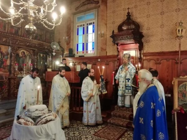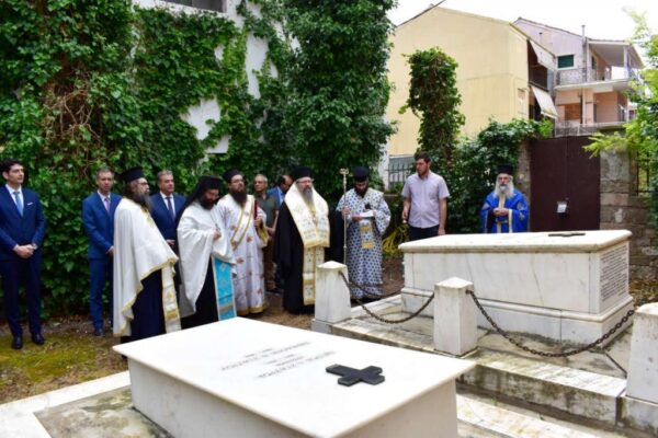 Στην συνέχεια, εψάλη τρισάγιο όπισθεν του Ιερού Ναού στην μνήμη του Αριστοτέλη Βαλαωρίτη, του Πρόξενου Πέτρου Σταύρου και της συζύγου του Πηνελόπης καθώς και των κτητόρων του εν λόγω Ιερού Ναού Σπυρίδωνος και Μαρίας Σταύρου.