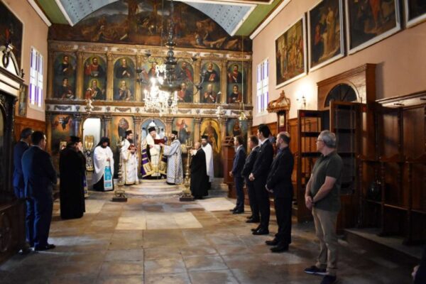 Μετά το πέρας της Αναστάσιμης Θείας Λειτουργίας και ώρα 11:00 π.μ. ο Σεβασμιώτατος συνοδευόμενος από τους κληρικούς μας κατευθύνθηκαν στον Ιερό Ναό του Παντοκράτορος όπου και εψάλη επίσημη δοξολογία, χοροστατούντος του Σεβασμιωτάτου Μητροπολίτου, με την παρουσία μόνο των πολιτικών και στρατιωτικών αρχών του τόπου, κρατώντας τα προβλεπόμενα μέτρα ασφάλειας κατά του κορωνοϊού.