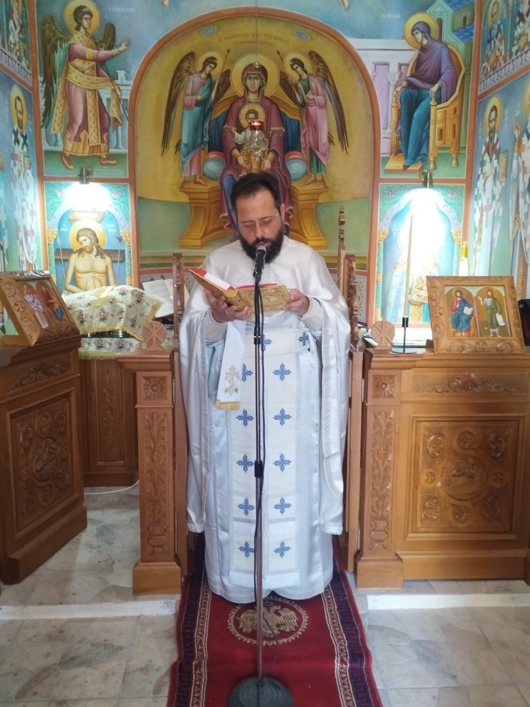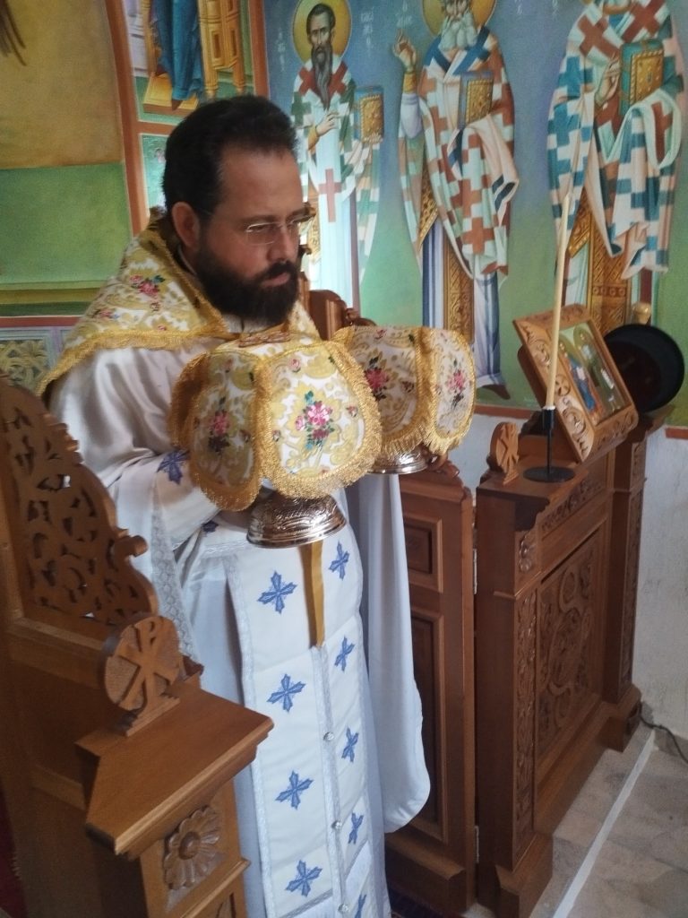 Το Μυστήριο τέλεσε ο Αιδεσιμολογιώτατος Πρεσβύτερος π. Νικόλαος Κοντοπρίας, εφημέριος του Ιερού Ενοριακού Ναού Κοιμήσεως Θεοτόκου Νυδριού Λευκάδος. Πριν το πέρας της Θείας Λειτουργίας τελέσθηκε Τρισάγιο υπέρ αναπαύσεως των κτητόρων του Ιερού Παρεκκλησίου Ευσταθίου, Ευτυχίου και Περσεφόνης Λαλαφράγκου.