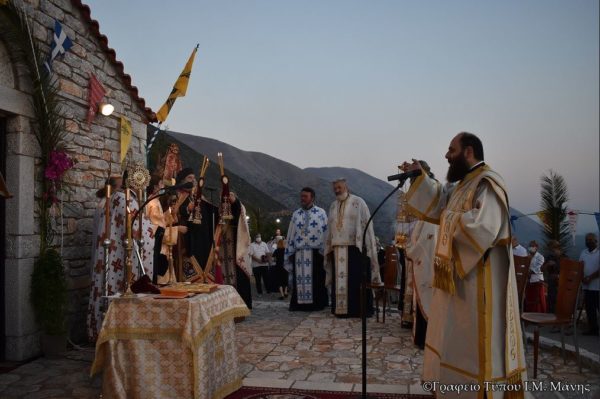 Στον Ιερό Ναό Αγίου Κοσμά του Αιτωλού, στον ορεινό όγκο Σαγγιάς της περιοχής της Τριανταφυλλιάς, Ανατολικής Μάνης, χοροστάτησε στον Πανηγυρικό Εσπερινό ο Μητροπολίτης Μάνης κ. Χρυσόστομος Γ’.
