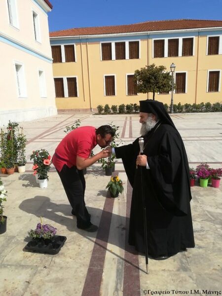 Ο Σεβασμιώτατος Μητροπολίτης Μάνης μετέβη, συνοδευόμενος από κληρικούς, σήμερα 1η Μαΐου, μετά την Θ. Λειτουργία που τέλεσε στον Ι.Ν. Αγίου Νικολάου Γυθείου, στην ανθοκομική έκθεση, που διοργανώνει για 7η χρονιά, ο Δήμος Ανατολικής Μάνης, στην πλατεία Δημαρχείου Γυθείου. Εκεί ευλόγησε τους παραγωγούς ανθέων και τους ανθοπώλεις, τους συνεχάρη για τους κόπους τους και τους ευχήθηκε ο Αναστάς Κύριος να τους χαρίζει υγεία και καλό στους ίδιους και στις οικογένειές τους.