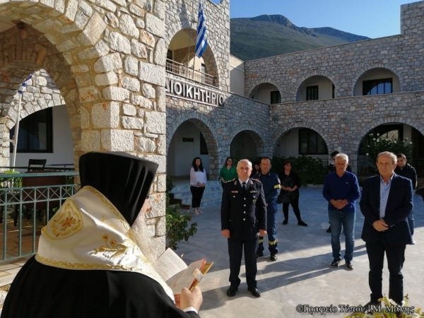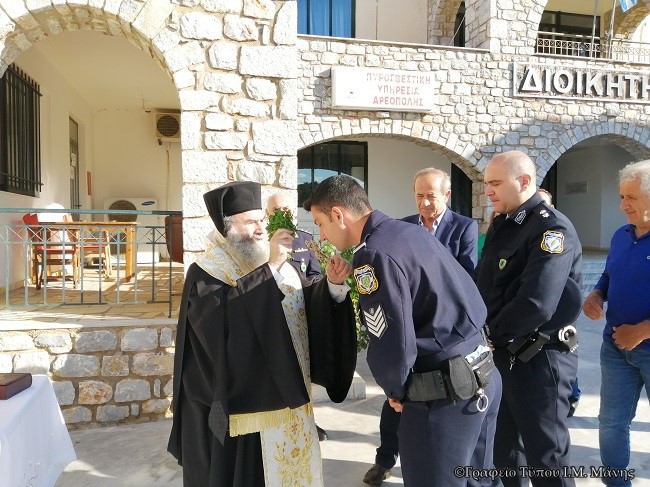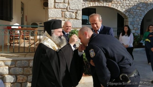 Ο Σεβ. Μητροπολίτης Μάνης κ. Χρυσόστομος Γ’ μετέβη στις 21 Οκτωβρίου επ’ ευκαιρία της εορτής του Αγίου Αρτεμίου, προστάτου του Αστυνομικού Σώματος στο Αστυνομικό Τμήμα Αρεόπολης Μάνης και τέλεσε τον Αγιασμό προς υγείαν και θεία βοηθεία των υπηρετούντων εκεί αστυνομικών.