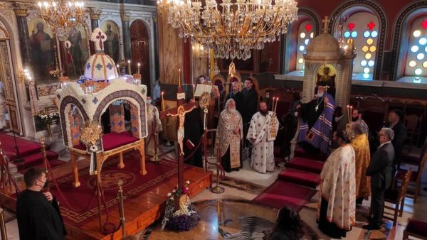 Στην Ακολουθία των Μ. Ωρών και της Αποκαθηλώσεως στον Μητροπολιτικό Ι. Ν. Αγ. Βασιλείου Τριπόλεως συμμετείχε ο Σεβασμιώτατος Μητροπολίτης Μαντινείας και Κυνουρίας κ. Αλέξανδρος σήμερα, Μεγάλη Παρασκευή.