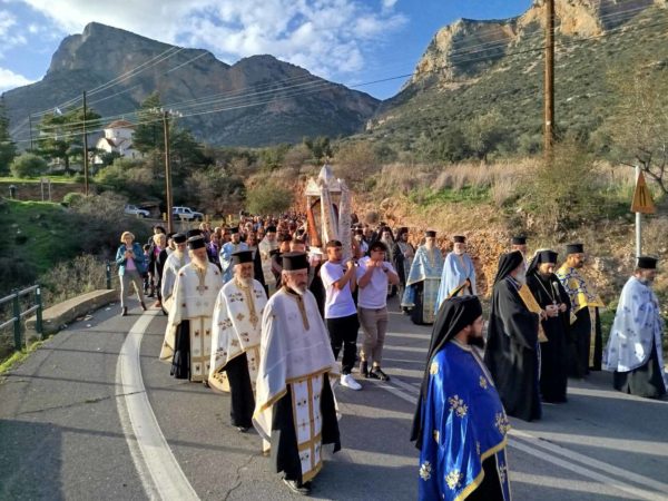 Ο προσκληθείς Σεβασμιώτατος Μητροπολίτης Γόρτυνος και Μεγαλοπόλεως κ. Νικηφόρος προεξήρχε της λιτανευτικής πομπής, συμπαραστατούμενος από τον οικείο Μητροπολίτη Μαντινείας και Κυνουρίας κ. Επιφάνιο, τον Θεοφιλέστατο Επίσκοπο Τεγέας κ. Θεόκλητο, καθώς και τον πρόεδρο της διαχειριστικής επιτροπής της Ιεράς Μονής, με τη συμμετοχή των ιερέων της περιφέρειας και της Ιεράς Μητροπόλεως.
