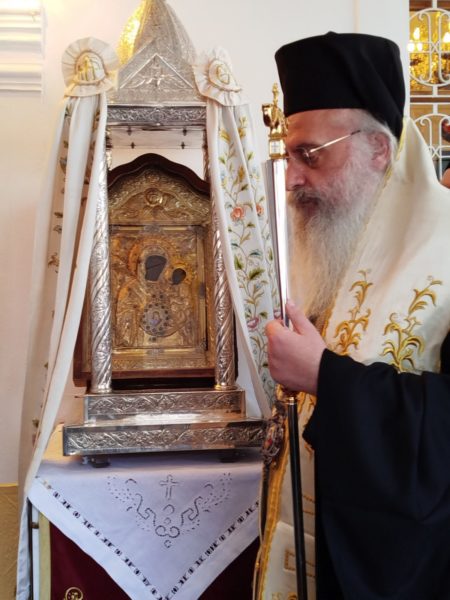 Καθ’ όλη τη διάρκεια της πομπής ψάλλεται ο παρακλητικός κανόνας της Θεοτόκου.