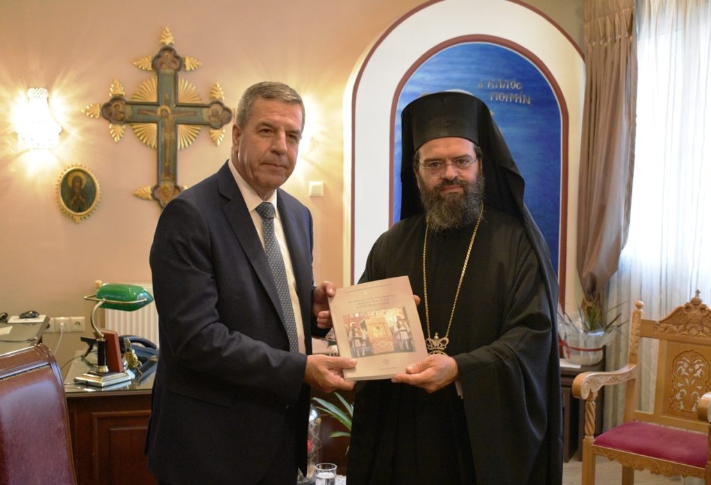 Με τη νέα του ιδιότητα, αυτή του υπηρεσιακού Υπουργού Προστασίας του Πολίτη, ο Χαράλαμπος Λαλούσης επισκέφθηκε τα Γραφεία της Ιεράς Μητροπόλεως Μαρωνείας και Κομοτηνής.