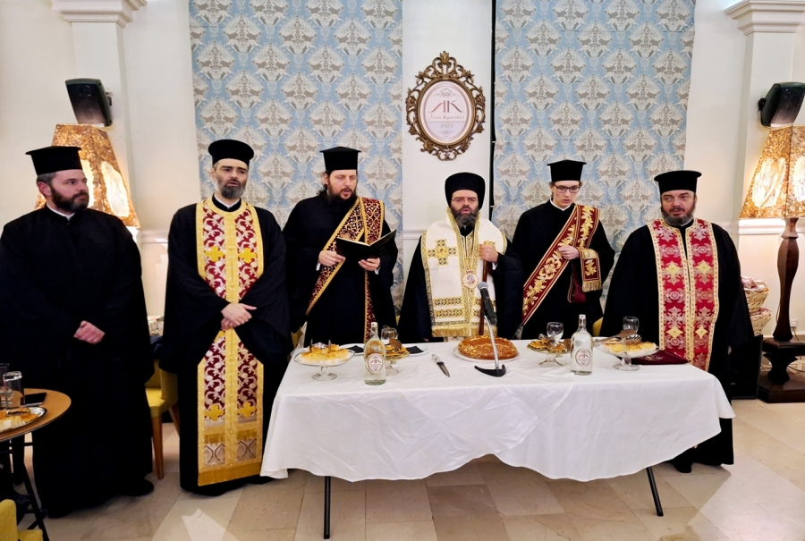 Ακολούθως, ο Σεβασμιώτατος ευλόγησε την Βασιλόπιτα του νέου έτους, προς τιμήν των Ιερατικών οικογενειών, μίλησε καταλλήλως προς τους Ιερείς και τα μέλη των οικογενειών τους, εξαίροντας την διακονία τους και τους παρότρυνε να συνεχίσουν την ένζηλο και ένθεο προσφορά τους για τη σωτηρία των ψυχών.