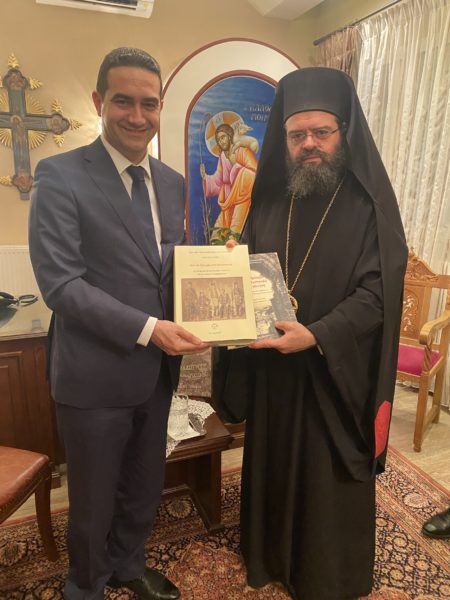 Από την πλευρά του ο Επικεφαλής της Κοινοβουλευτικής Ομάδος του ΚΙΝ.ΑΛ. ευχαρίστησε τον Σεβασμιώτατο για την υποδοχή και την φιλοξενία και ανέπτυξε μετ’ αυτού εποικοδομητική συζήτηση.