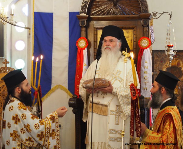 Ο Σεβασμιώτατος, κλείνοντας το κήρυγμά του, ευχήθηκε «Χρόνια Πολλά σε όλους», και στους Εορτάζοντες διπλά «Χρόνια Πολλά».