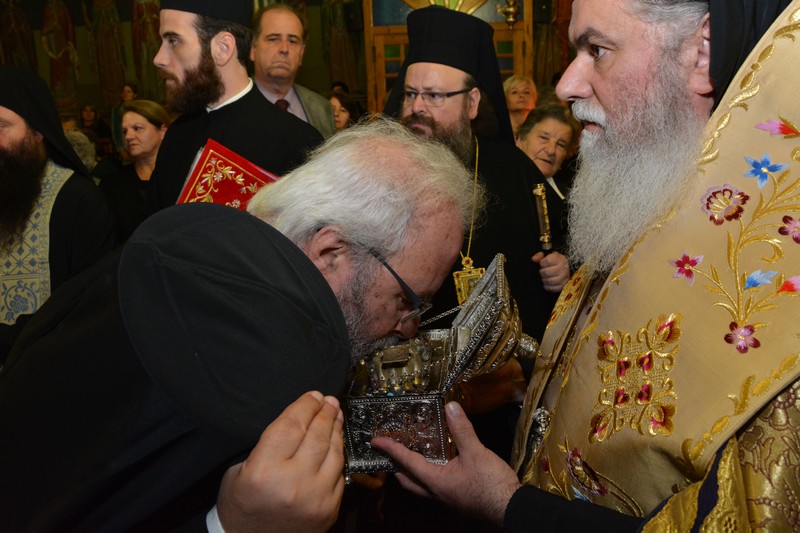 Στην Ακολουθία χοροστάτησε ο Σεβ. Μητροπολίτης Καλαβρύτων κ. Ιερώνυμος, συγχοροστατούντων των Σεβ. Μητροπολιτών Δημητριάδος κ. Ιγνατίου, Κοζάνης κ. Παύλου, Άρτης κ. Καλλινίκου, Κηφισίας κ. Κυρίλλου, Κίτρους κ. Γεωργίου, Σουηδίας κ. Κλεόπα, Μεγάρων κ. Κωνσταντίνου, Περιστερίου κ. Κλήμεντος, Σταγών κ. Θεοκλήτου, Μεσσηνίας κ. Χρυσοστόμου και των Θεοφιλ. Επισκόπων Αβύδου κ. Κυρίλλου, Αμορίου κ. Νικηφόρου και Τεγέας κ. Θεοκλήτου.