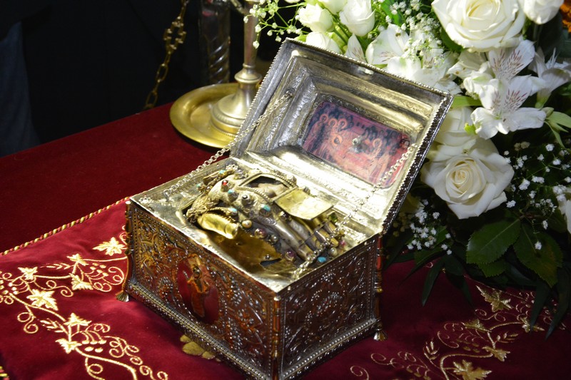 Προ του Εσπερινού πραγματοποιήθηκε η υποδοχή της Τιμίας Χειρός του Αγίου Ιωάννου του Χρυσοστόμου, εκ της Ιεράς Μονής Αγίων Πάντων Βαρλαάμ Μετεώρων. Το Ιερό θησαύρισμα μετέφερε ο Μητροπολίτης Σταγών και Μετεώρων κ. Θεόκλητος.