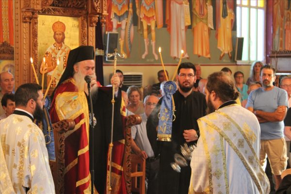 Ο Θεοφιλέστατος Θεσπιών κ. Παύλος απηύθυνε εμπνευσμένο κήρυγμα προς το εκκλησίασμα, επικεντρωμένο στη σημασία της πίστης, της ταπείνωσης και της διακονίας στην καθημερινή ζωή των πιστών. Τόνισε ιδιαίτερα την πνευματική δύναμη της Θεοτόκου και επαίνεσε την τοπική κοινωνία για την ενεργό συμμετοχή της στα εκκλησιαστικά δρώμενα.