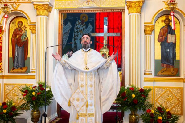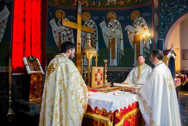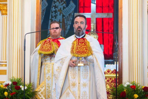 Του Όρθρου και της πανηγυρικής Θείας Λειτουργίας προέστη ο εκ Καλαμάτας καταγόμενος Αρχιμανδρίτης Νικόδημος Αθανασίου, Β’ Γραμματέας της Ιεράς Συνόδου και Πρωτοσύγκελλος της Ιεράς Μητροπόλεως Ιλίου, Αχαρνών και Πετρουπόλεως, πλαισιωμένος από τους εφημερίους του Ναού π. Γεώργιο Τσιριγώτη και π. Ανδρέα Γεωργακόπουλο.