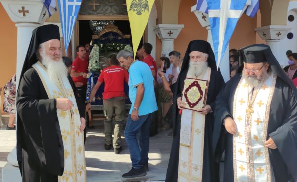 Την πανηγυρική θεία Λειτουργία τέλεσε ο Πρωτοπρεσβύτερος Αθανάσιος Σιψάς, ενώ στη συνέχεια της Ιεράς Παρακλήσεως και της εξόδου της Ιεράς Εικόνος προέστη ο Πανοσιολ. Αρχιμανδρίτης Τιμόθεος Μπινίσκος, πλαισιούμενος από Ιερείς της πόλεως.