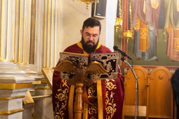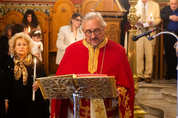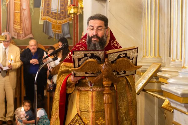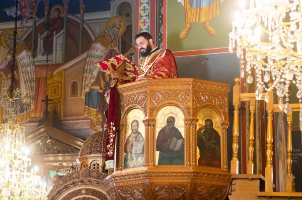Συγκεκριμένα ο Σεβασμιώτατος ανέγνωσε το Ευαγγέλιο στην Γαλλική, ο Ιεροκήρυκας της Ιεράς Μητροπόλεως Αρχιμ. Γεώργιος Μπίζας στην Λατινική, ο Αρχιμ. Αλέξιος Αρώνης στην Αγγλική, ο Πρωτοπρεσβύτερος Βασίλειος Παπαθανασίου στην Ρωσική, ο Πρωτοπρεσβύτερος Σωτήριος – Φάντι Ντίμπ στην Αραβική, ο Πρωτοσύγκελλος της Ιεράς Μητροπόλεως Αρχιμ. Φίλιππος Χαμαργιάς στην Τουρκική και ο Διάκονος Θεόφιλος Κυριάκος στην Ελληνική.