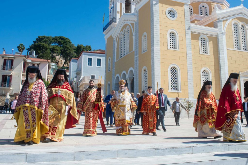 Εν συνεχεία άπαντες μετέβησαν εν πομπή, προεξάρχοντος του Σεβασμιωτάτου Μητροπολίτου Μεσσηνίας κ. Χρυσοστόμου, πλαισιωμένου από τον κλήρο και τους άρχοντες του τόπου, στον Ιερό Μητροπολιτικό Ναό της Υπαπαντής του Χριστού και τελέσθηκε ο εσπερινός, κατά τον οποίο ανεγνώσθη το Ευαγγέλιο σε ξένες γλώσσες.