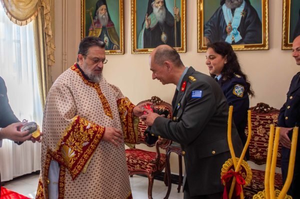 Μετά το πέρας της Ακολουθίας και πάλι εν πομπή άπαντες, ο κλήρος, οι αρχές και ο λαός, μετέβησαν στην Αίθουσα του Θρόνου του Επισκοπείου και ο Σεβασμιώτατος διένειμε τα καθιερωμένα κόκκινα αυγά ευχόμενος στους παρόντες άρχοντες, στον Δήμαρχο Καλαμάτας κ. Αθανάσιο Βασιλόπουλο, στον Βουλευτή κ. Μίλτο Χρυσομάλλη, στον Διοικητή του 9ου Σ.Π. Συνταγματάρχη Γεώργιο Χαρίτο και στους λοιπούς παριστάμενους εκπροσώπους των Σωμάτων Ασφαλείας και σε όλους τους πιστούς.